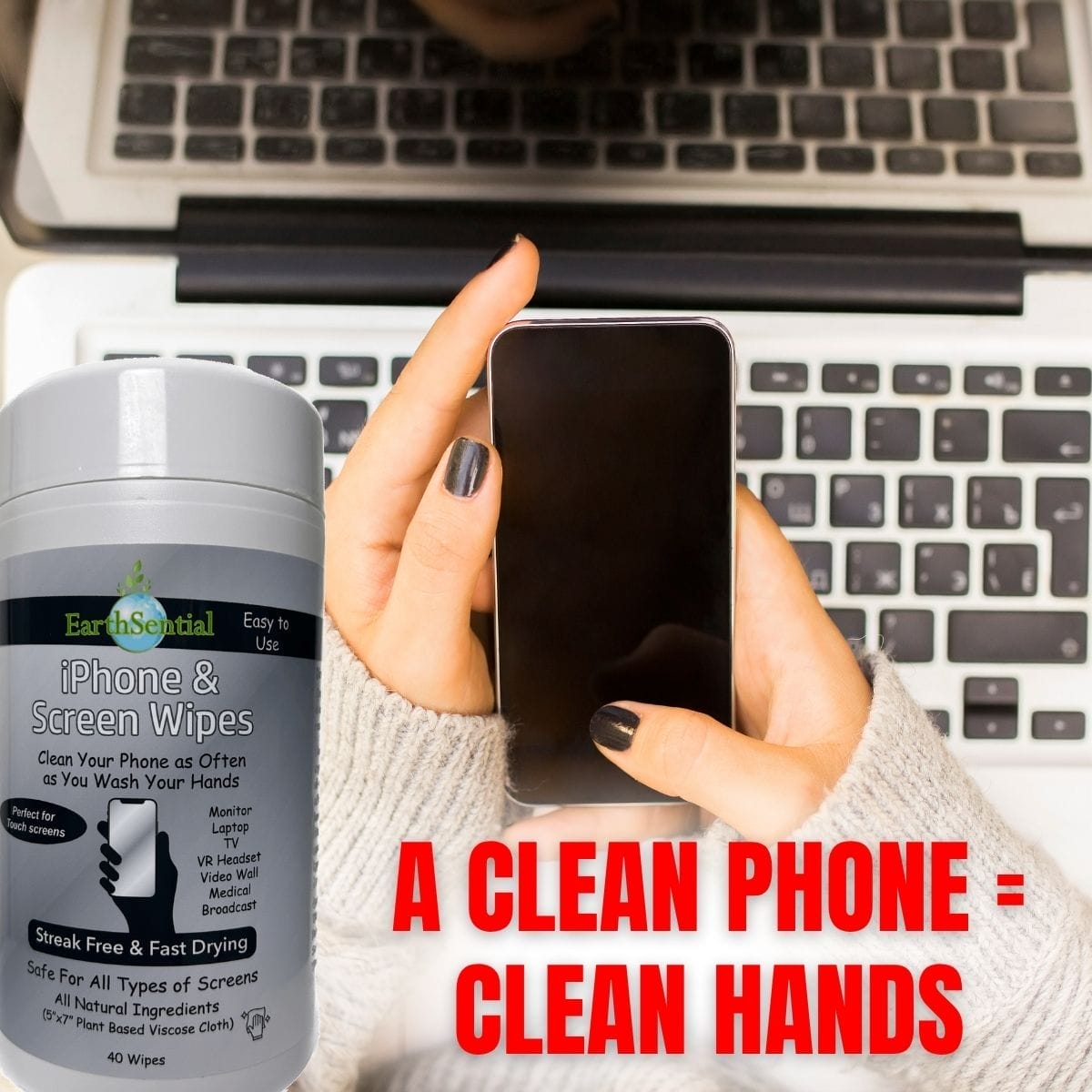 EarthSential iPhone Screen Cleaning Wipes gently lift away grime with an all-natural, non-toxic formula made from soft viscose cotton. Safe for all screens, fast-drying, and ready whenever you are.