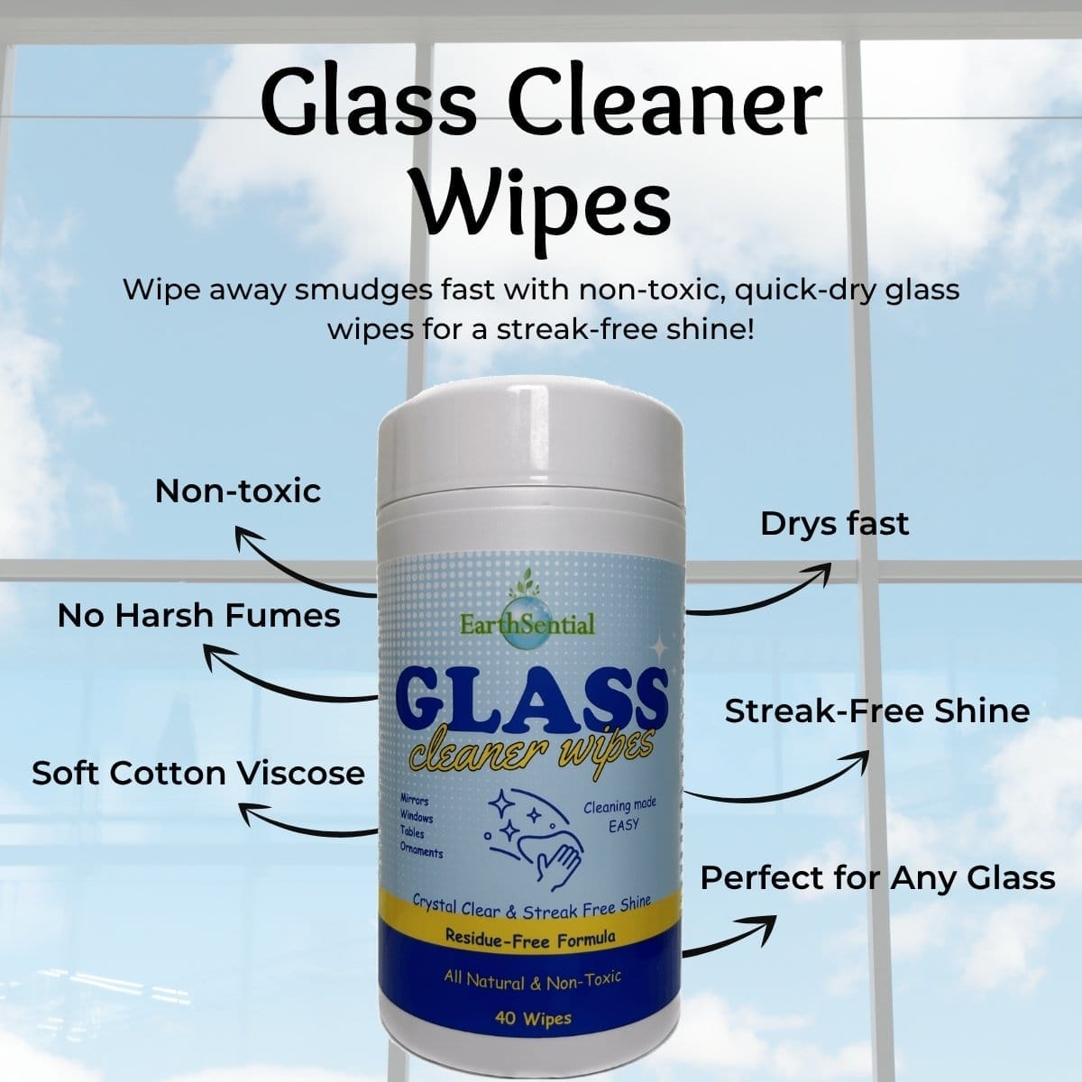 EarthSential Glass Cleaner Wipes make it easy to get crystal-clear surfaces in seconds — no spray, no streaks, no harsh chemicals. Safe, plant-based, and ready when you are.