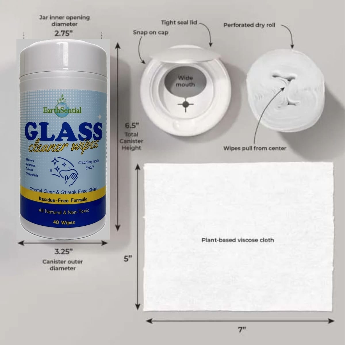 Rev up your cleaning game with EarthSential's Glass Cleaner Wipes – the secret weapon for hassle-free glass sparkle! Crafted from 100% plant-based magic and packed in a handy 5"x7" size, these wipes are your eco-friendly sidekick. But wait, there's more! The solution is made from 100% natural ingredients – safe and sound for your glass and surroundings. With just one swipe, say adios to streaks and grime on windows, mirrors, glass tables, and even picture frames. Cleaning made super easy, like magic at your fingertips. EarthSential – where simplicity meets sparkle in every wipe. Get ready to be wowed!