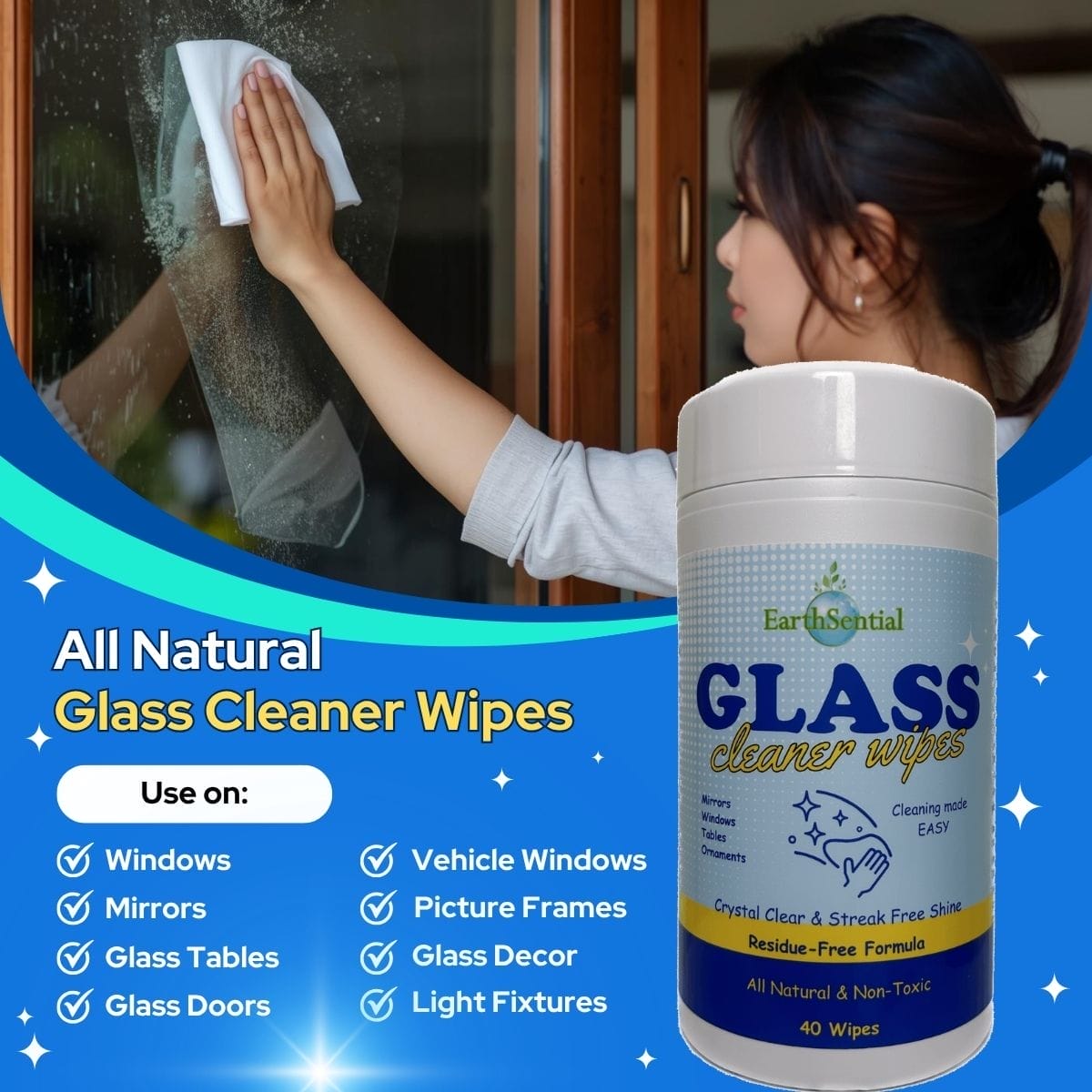 Swipe away streaks with EarthSential Glass Cleaner Wipes! 100% plant-based, eco-friendly, and streak-free—pure sparkle, zero hassle.