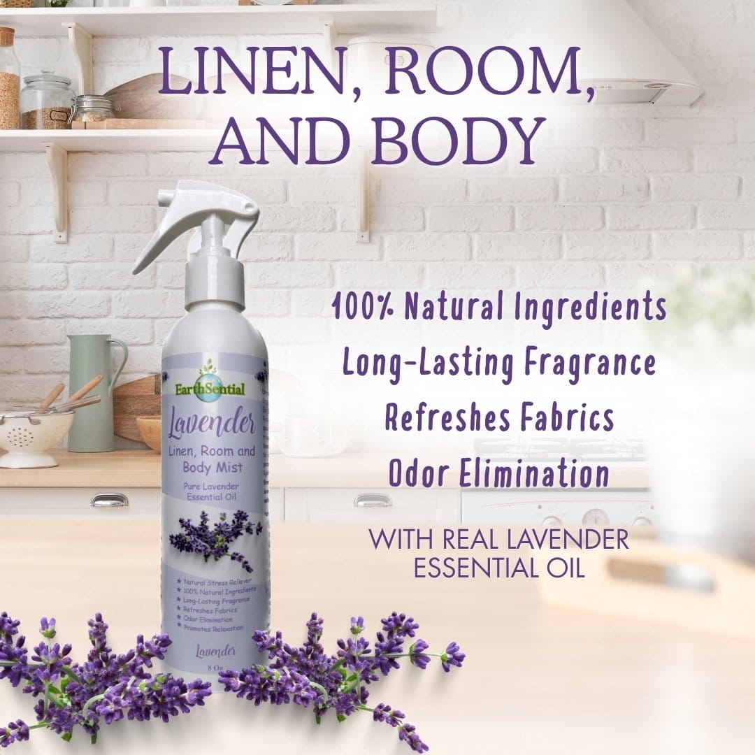 EarthSential Lavender Room Spray – a soothing, all-natural spray crafted with pure lavender essential oil. Refresh fabrics, calm the senses, and bring serenity into every moment.